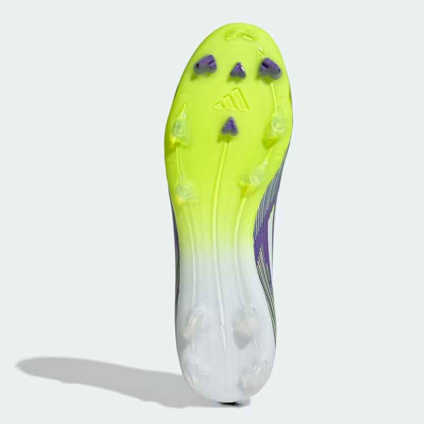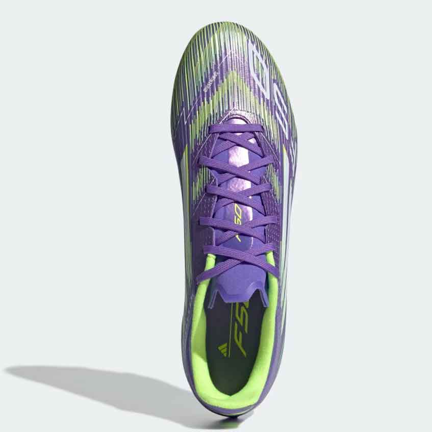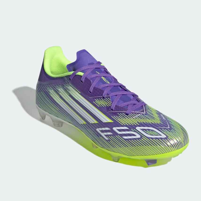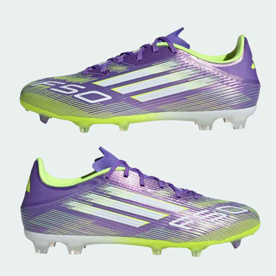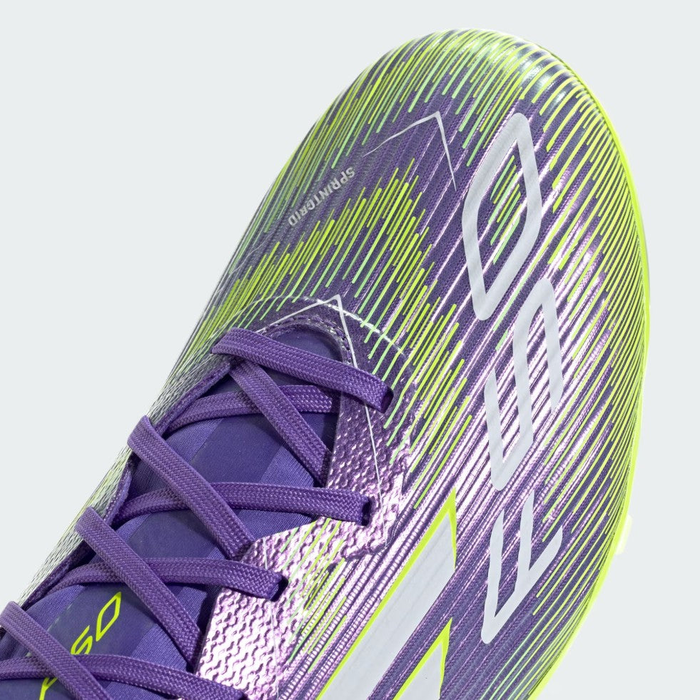 Trova la tua velocità per esprimerti davvero sul campo. Prova l'adrenalina con le scarpe da calcio F50 progettate per la velocità. Con la grintosa grafica Sprintgrid che cattura lo sguardo, la tomaia Fiberskin di queste scarpe League integra la linguetta Tunnel Tongue adattiva per una calzata stabile e sicura. L'iconica suola Sprintplate garantisce un ritmo sostenuto su diverse superfici.
