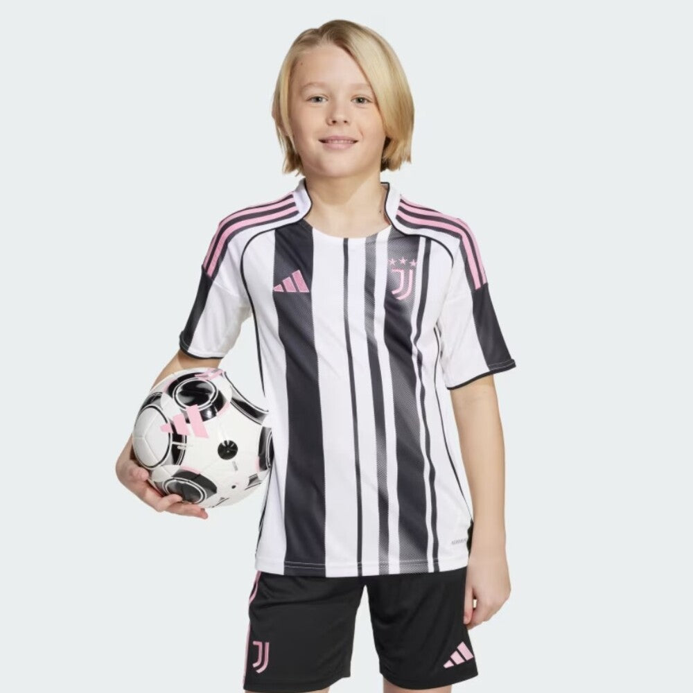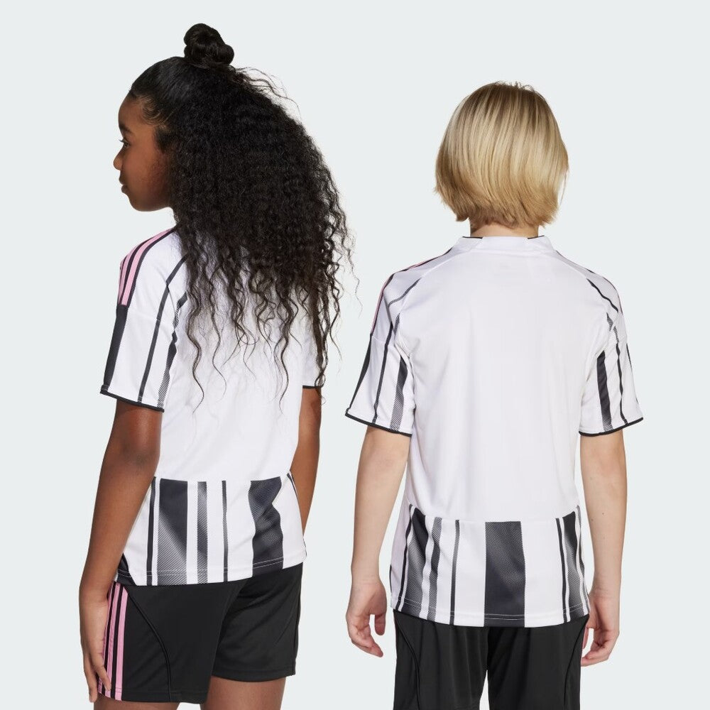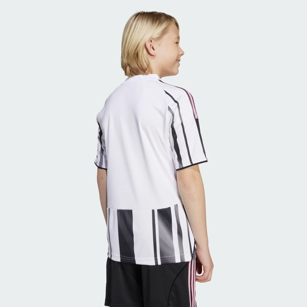 Questa maglia Home adidas della Juventus rinnova le leggendarie strisce bianconere del club con un design contemporaneo e dinamico, pensato per i giovani tifosi che vivono la passione bianconera ogni giorno.