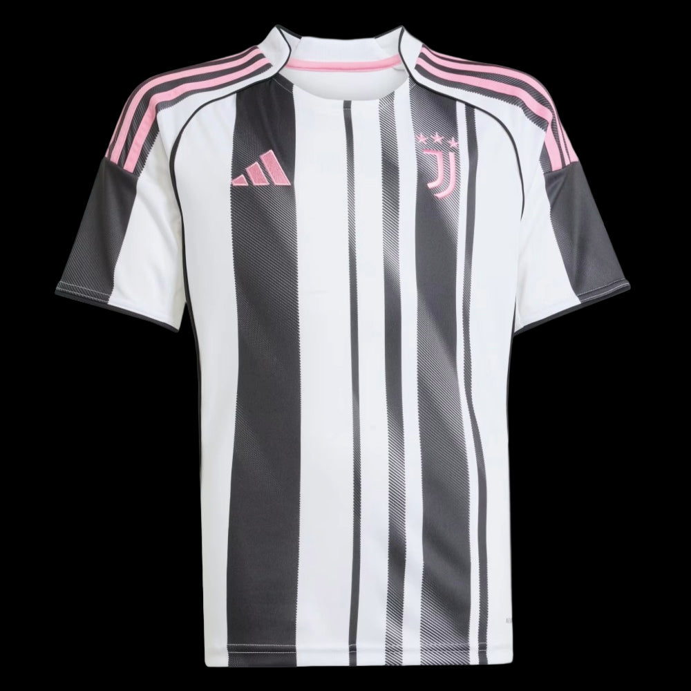 I dettagli rosa a contrasto e lo stemma ricamato della Juventus completano un look che unisce tradizione e innovazione, perfetto per sostenere la squadra con stile e comfort.