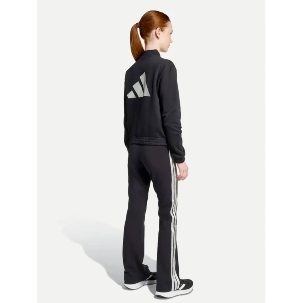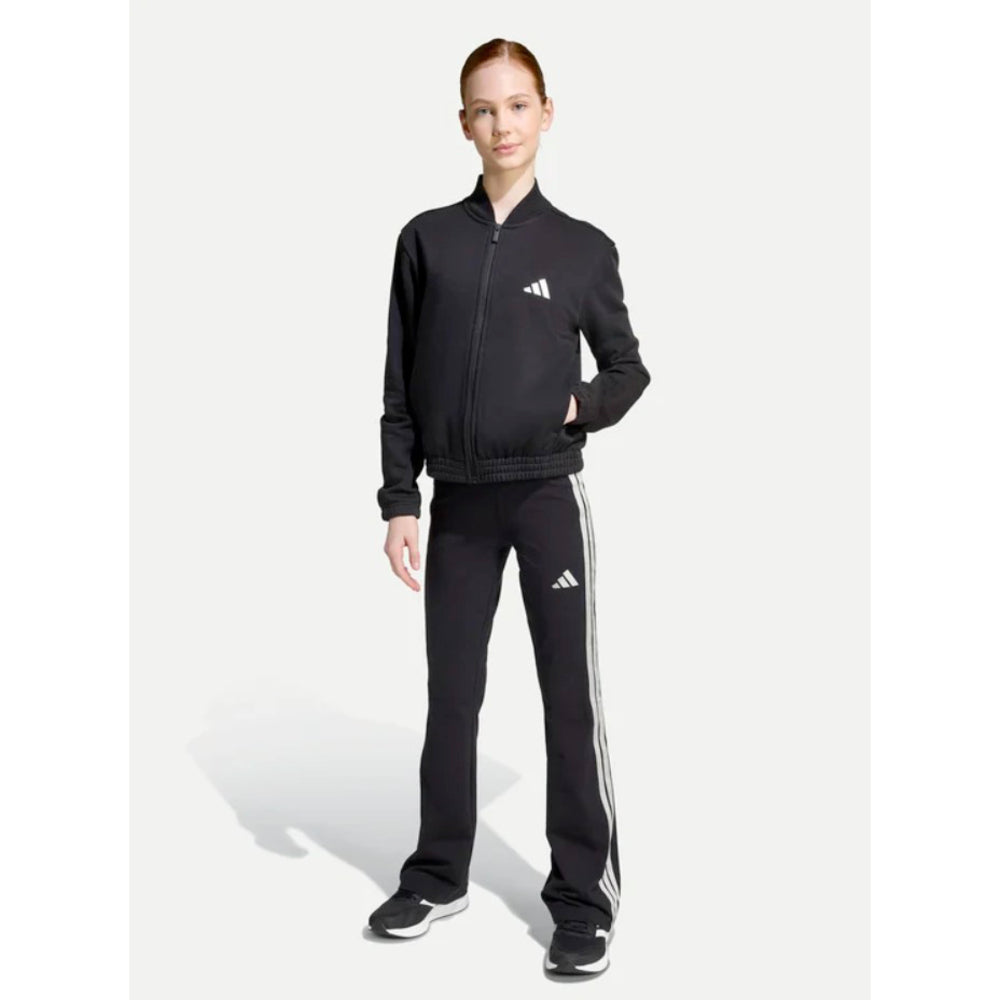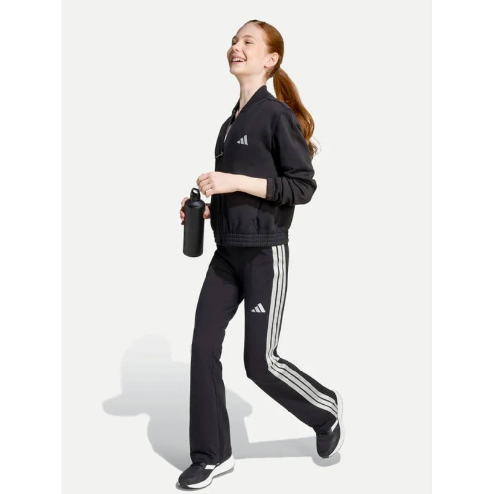 Il design è ispirato alle classiche tute Adidas, ma con un tocco moderno e glamour: i dettagli lucenti e le iconiche 3 strisce rendono il look dinamico e distintivo, perfetto sia per la scuola che per il tempo libero.