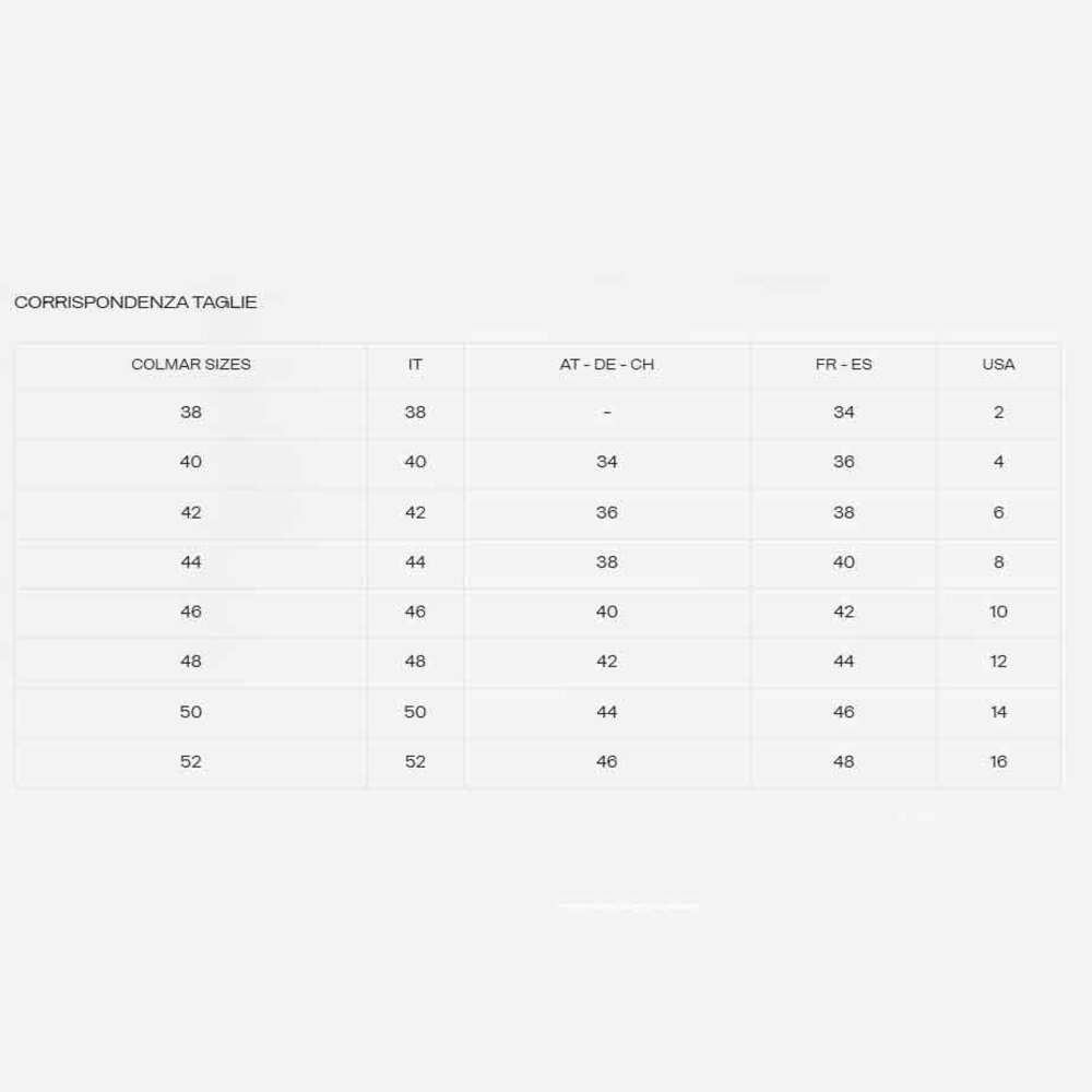 Completato da tasche laterali e dettagli raffinati come il logo Colmar Originals sulla manica sinistra e il patch “C” applicato sul retro, questo modello unisce eleganza essenziale e funzionalità quotidiana. All'interno, il nastro tricolore con clip permette di abbinare il cappotto al gilet della collezione (Mod. 2083 2YO), per uno strato extra di calore nei giorni più rigidi.