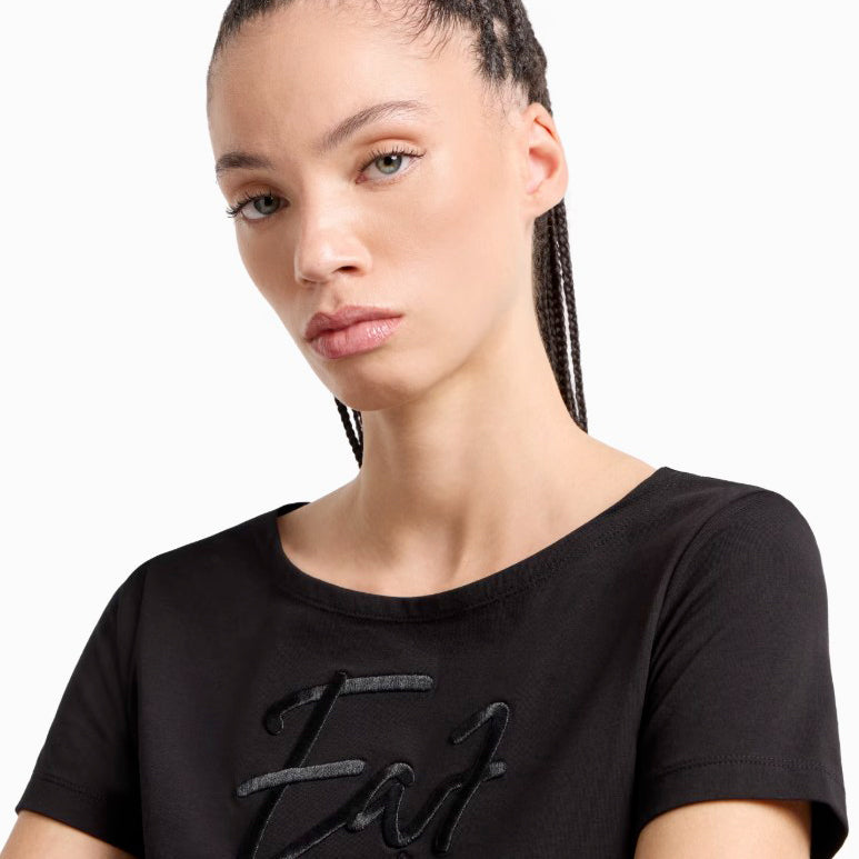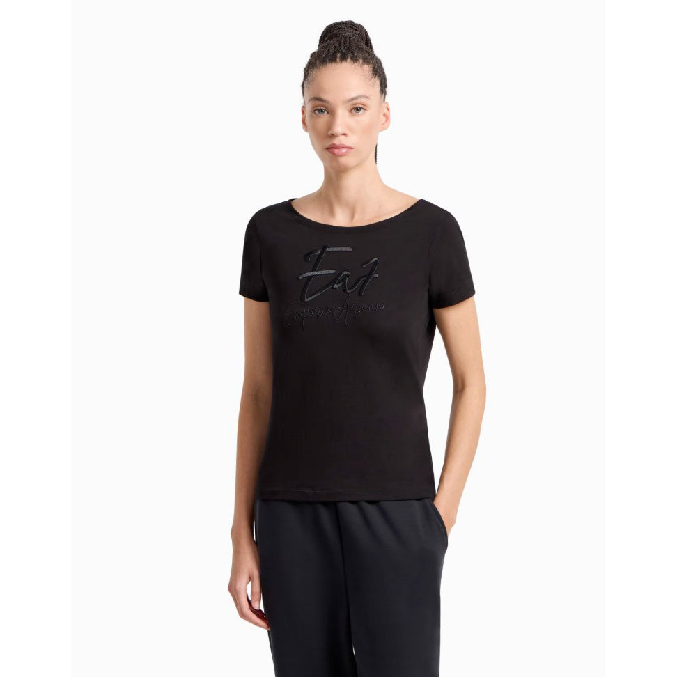 Emporio Armani T-Shirt Scollo A Barchetta Logo Series In Cotone Stretch da Donna 7W000184-AF10373UC001