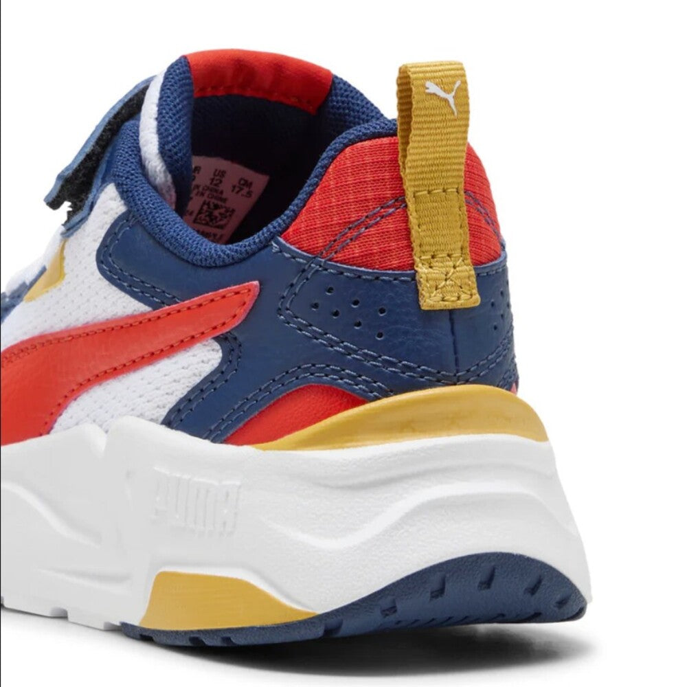 Puma Trinity Lite da Bambino 39148017. Trinity Lite trae ispirazione dalle scarpe da running e aggiunge voluminosi elementi rétro per dare impulso al tuo stile. Queste sneakers presentano rivestimenti sintetici a contrasto con una tomaia in rete, e una soletta interna SoftFoam+ per offrire ammortizzazione al sottopiede, a ogni passo durante la tua giornata.