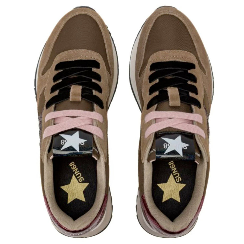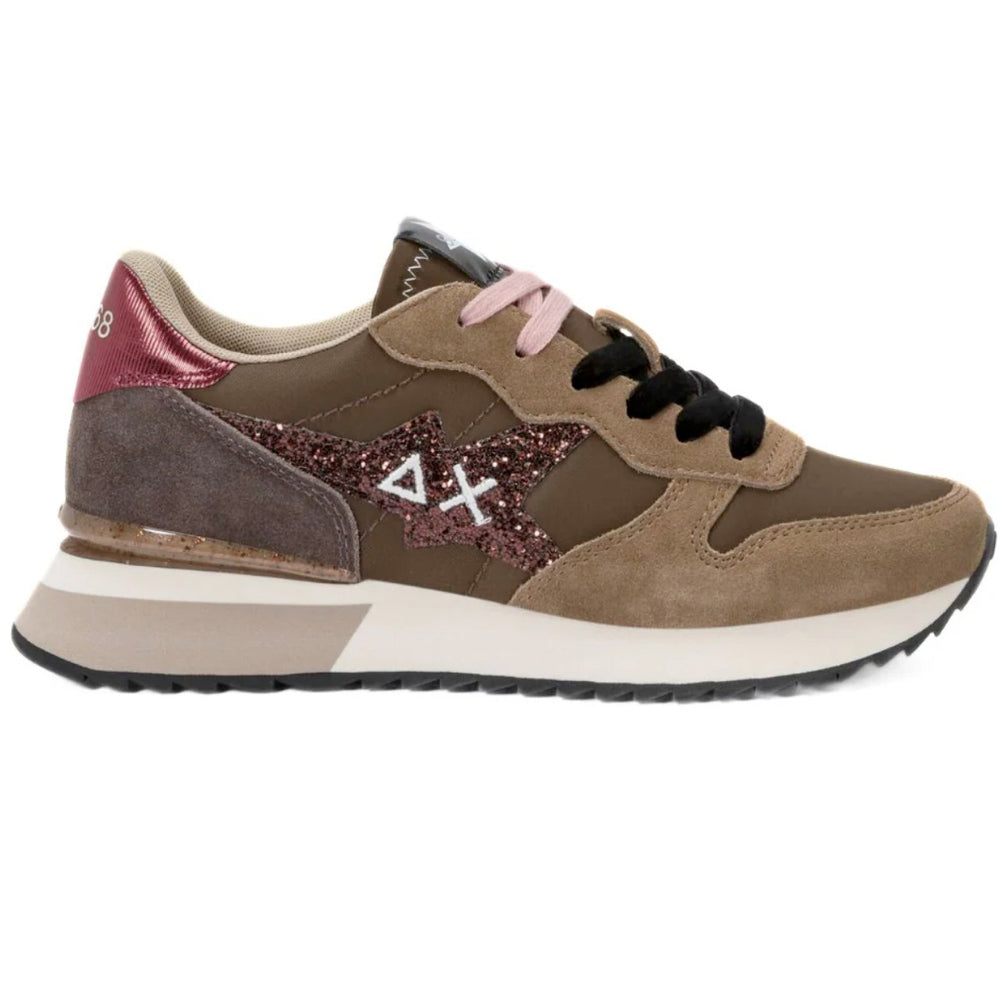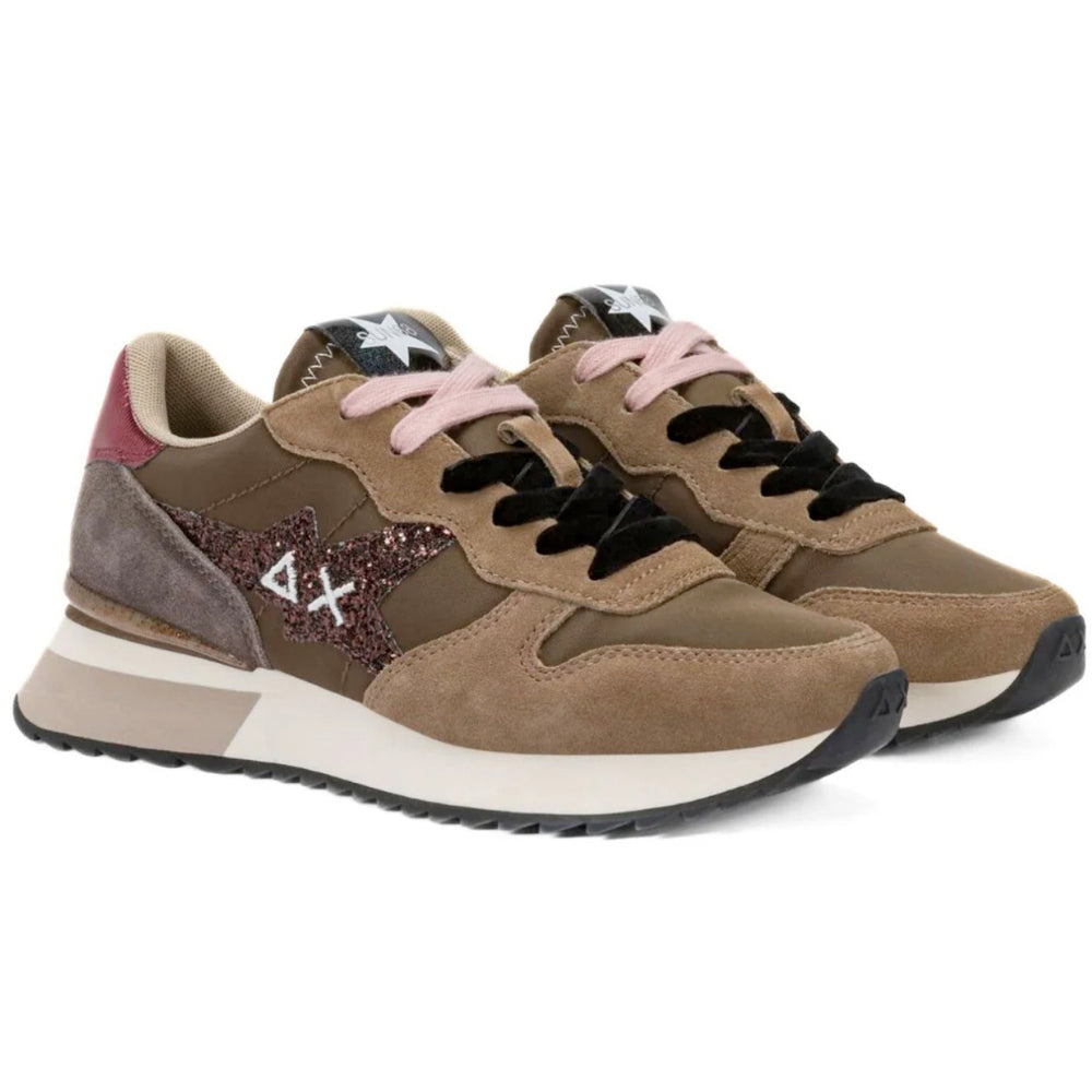 Realizzate in tessuto e materiali sintetici di alta qualità, presentano una base nera elegante, arricchita da logo laterale glitterato che cattura la luce e aggiunge un tocco glamour. I dettagli rosa metallizzato su tallone e linguetta donano un contrasto femminile e raffinato.