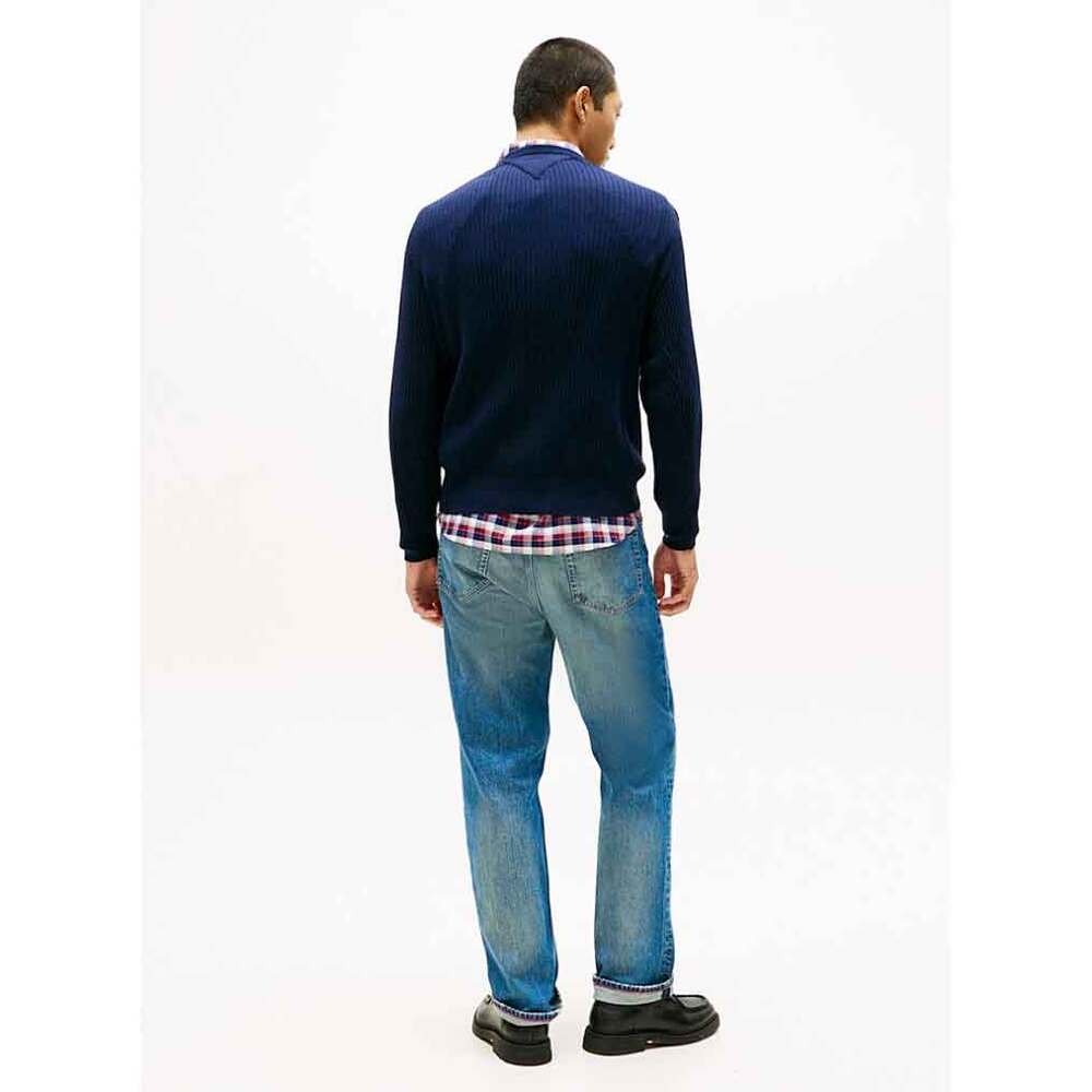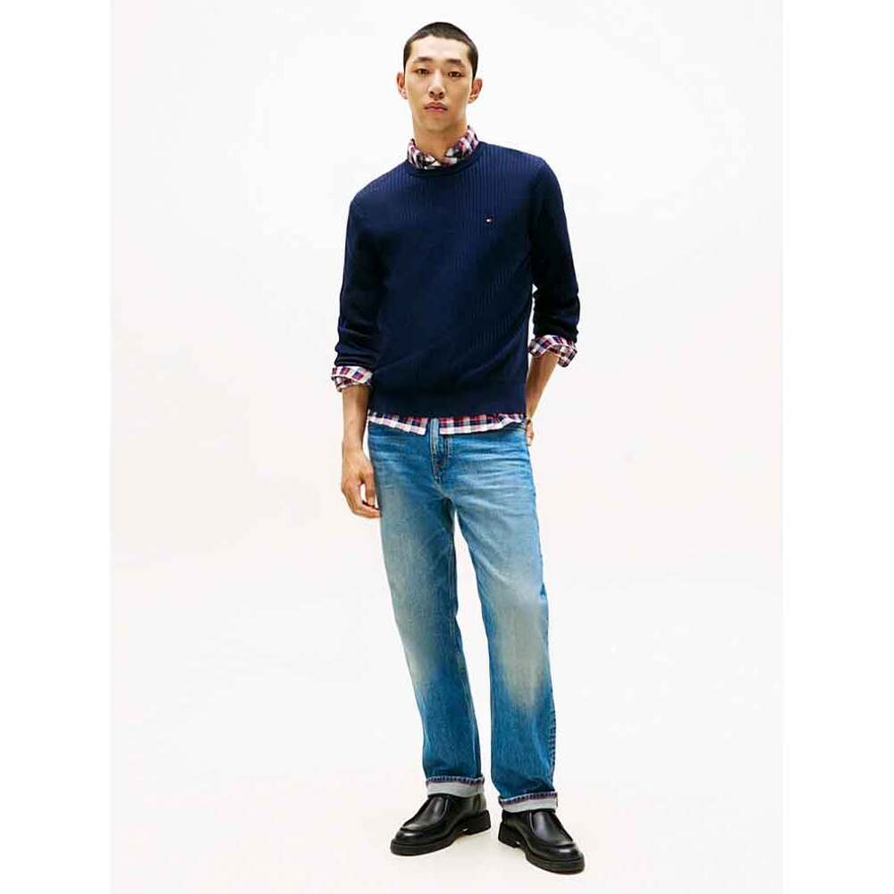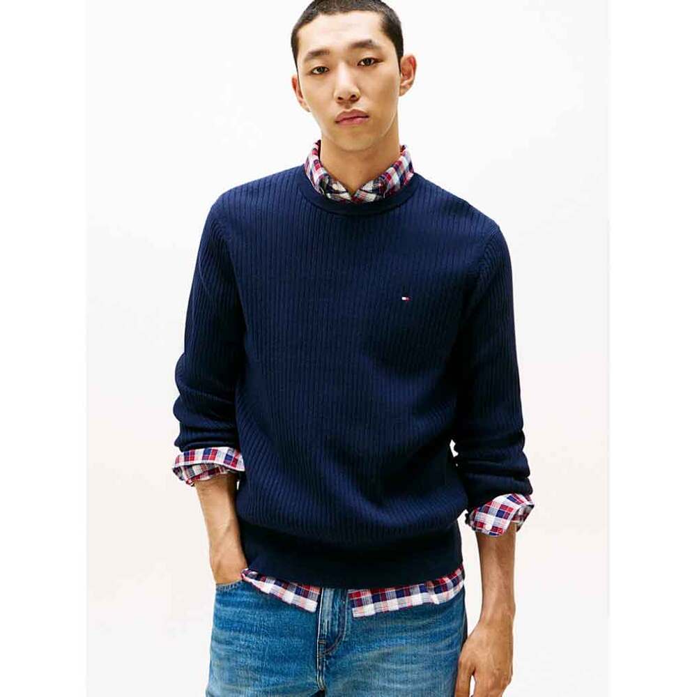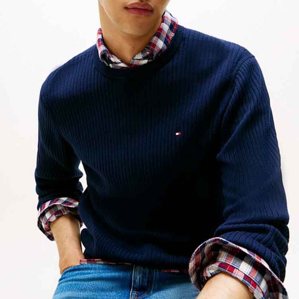 La lavorazione a coste all over dona carattere e struttura al tessuto, mentre il girocollo classico e le spalle leggermente scese conferiscono un look casual ma elegante. L'iconico nastro interno al collo e la bandierina ricamata Tommy Hilfiger sul petto sottolineano l'inconfondibile identità del brand.