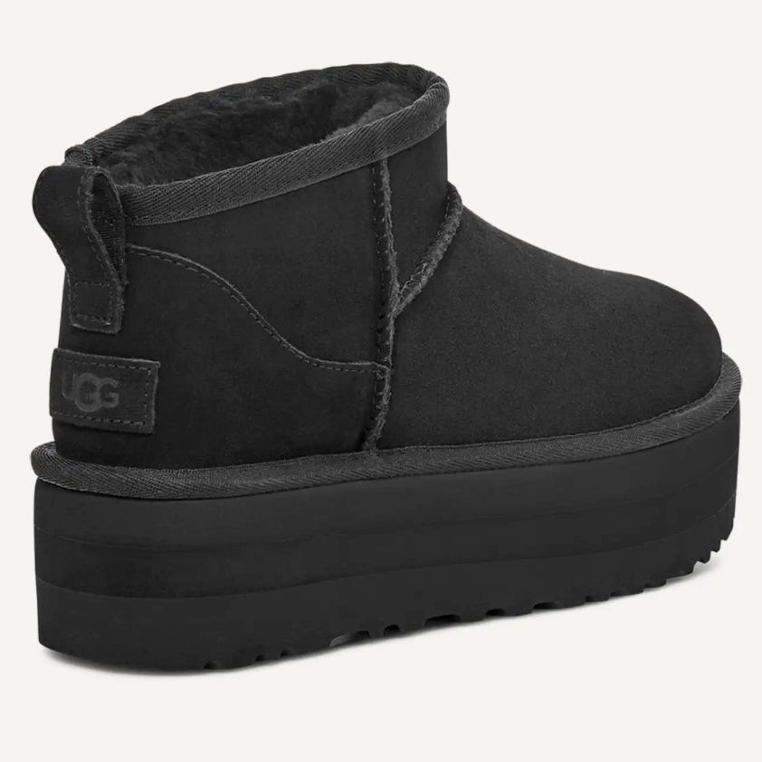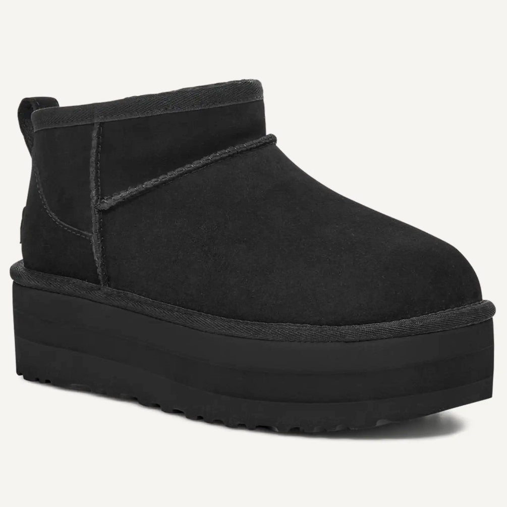 Indossati da Aweng Chuol, gli stivali Ultra Mini con plateau sono la rivisitazione in chiave moderna della nostra icona. Presentano un plateau di 5 cm, per elevare ancora di più il tuo stile.